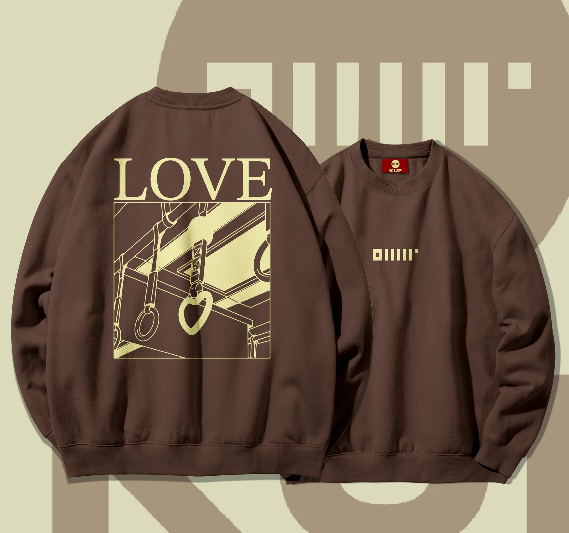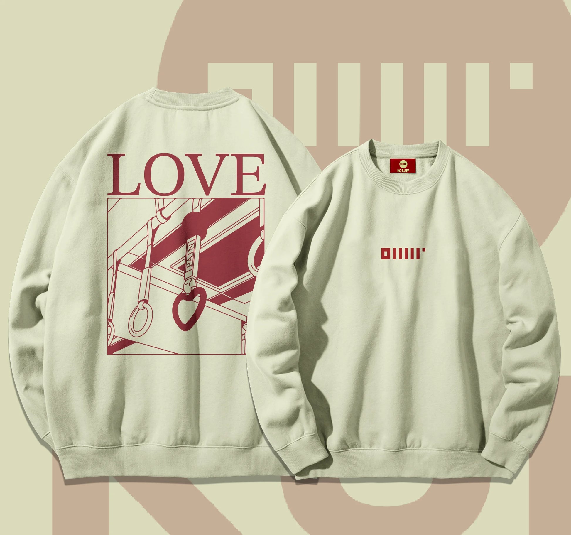 LOVE sweatshirt, Kuf Studio’nun imzasını taşıyan, yüksek gramaj pamuk kumaşa uygulanmış özel bir iş.